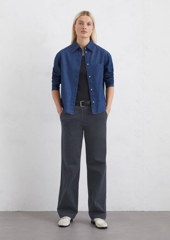 Diese lässige Bluse passt perfekt zum angesagten Jeans-Total-Look. Tipp: Besonders schön wirkt der Trend, wenn sich Ober- und Unterteil in der Waschung leicht unterscheiden. Die lässige Bluse ist aus einem fließenden, weichen Bio-Baumwoll-Lyocell-Gemisch in einem schönen Jeansblau. Der Schnitt: locker, kastenförmig, verkürzt, mit klassischer Knopfleiste und cooler abgerundeter Saumlinie. Mit modischem Kentkragen, aufgesetzter Brusttasche, Rückenpasse mit zwei Falten und langen Ärmeln mit Manschettenabschluss.