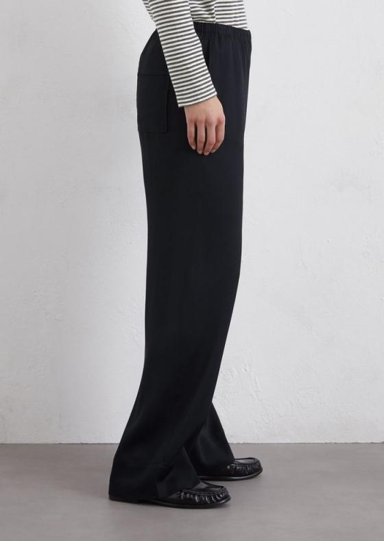 Satinhosen liegen im Trend und wir lieben sie. Seidig fließend versprechen sie einen neuen Look, der in Kombination mit der passenden Bluse innovativ und modern wirkt. Sie sind die elegante Antwort auf Jeans und passen zu vielen verschiedenen Anlässen. Dieses Modell ist nicht nur bequem und stylisch, sondern zaubert auch endlos lange Beine. Locker geschnitten und aus hochwertigem, fließendem Viskose-Stretch bietet es neben einer wunderbaren Stoffqualität und einer perfekten Silhouette auch einen hohen Tragekomfort. Mit schmalem Gummibund, Bindeband, praktischen Seitentaschen, aufgesetzter Gesäßtasche und lässigem, breitem Saum.