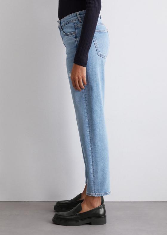 We love Mom-Jeans! Das neue Key-Piece im Denim-Sektor Ganz klar: die superlässige Jeans – Model Hetta – im entspannten, tapered cropped Fit. Modell mit hoher Taille und geradem Beinverlauf, der sich nach unten hin verjüngt und leicht verkürzt. Klassischer Five-Pocket-Style mit Kontrastnähten, cooler Waschung im angesagten 80er-Jahre-Look und dezenten Destroy-Details. Innovatives Recyclingmaterial trifft auf trendige Passform. Diese Jeans wird aus einer recycelten Faser hergestellt, die aus Textilabfällen gewonnen wird. Sie wird mit Bio-Baumwolle und Elasthan gemischt, um sie haltbarer zu machen. Unser Ziel ist es, unsere nachhaltigste Jeans herzustellen. Von den Rohstoffen bis hin zu den Färbeprozessen und Waschverfahren. Verfolgen Sie unseren Weg zu einer verantwortungsvolleren Produktion. It’s on us.