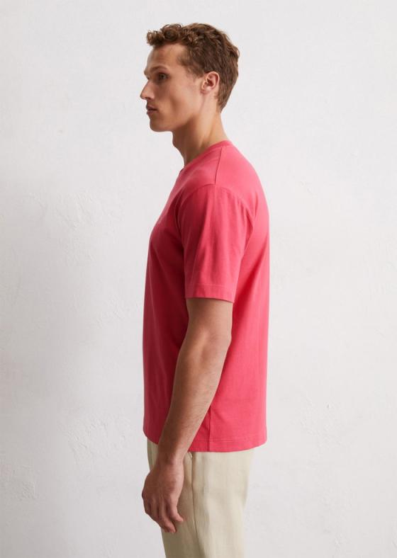 Cleanes Design trifft auf hochwertiges Material: das Basic-T-Shirt aus reiner, zertifizierter Bio-Baumwolle in softer Single Jersey-Qualität sorgt für hohen Tragekomfort. Im maskulinen Regular Fit mit fein geripptem Rundhalsausschnitt, kurzen Ärmeln und geradem Saum. Auf der Brust ist ein kleines, dezentes Logo in Kontrastfarbe angebracht. Vielseitig und flexibel.
