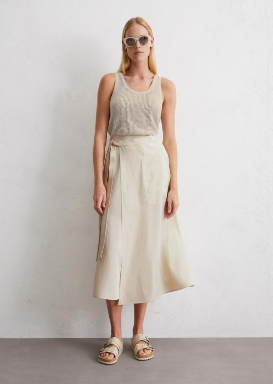 MARC O’POLO RÖCKE | DAMEN Wickelrock flared aus TENCEL Lyocell-Leinen-Mix Silky Stone